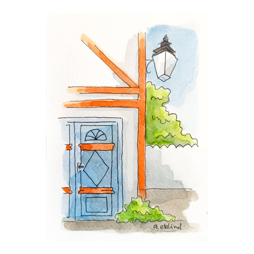 With mat and frame (30×40 cm) 800 SEK, painting only (21×30 cm) 650 SEK. Framed paintings pick up only.