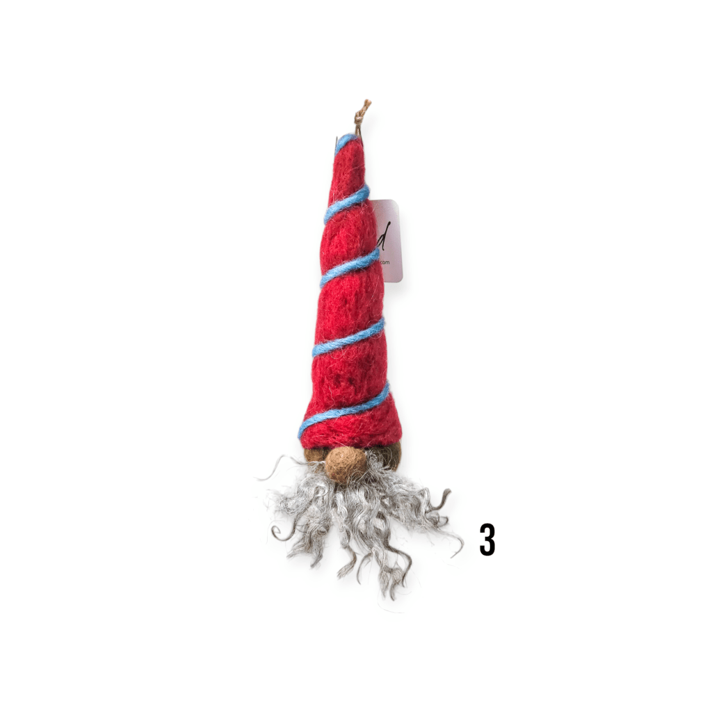 Needle felted hanging gnomes, approximately 20 cm tall. 100% wool.